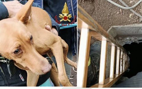 Cane precipita per sette metri in un pozzo a Olgiate: salvato dai vigili del fuoco