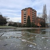 Rami e pezzi di carta gettati nello specchio d’acqua sono bloccati nel ghiaccio. Vicino all’area giochi, una fontanella giace a terra, piccoli rifiuti sono sparsi un po’ ovunque. In ordine, per ora e per fortuna, la zona in cui...