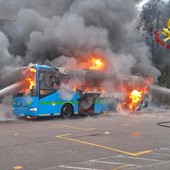 FOTO. Autobus distrutto dalle fiamme a Castellanza