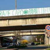 «Grazie Capo, Padania libera». In viale Europa a Varese uno striscione omaggia il Senatùr
