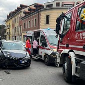 Incidente oggi pomeriggio a Gallarate. Nel sinistro coinvolta anche un'altra auto che si sarebbe allontanata dopo l'impatto. Sul posto ambulanza e vigili del fuoco